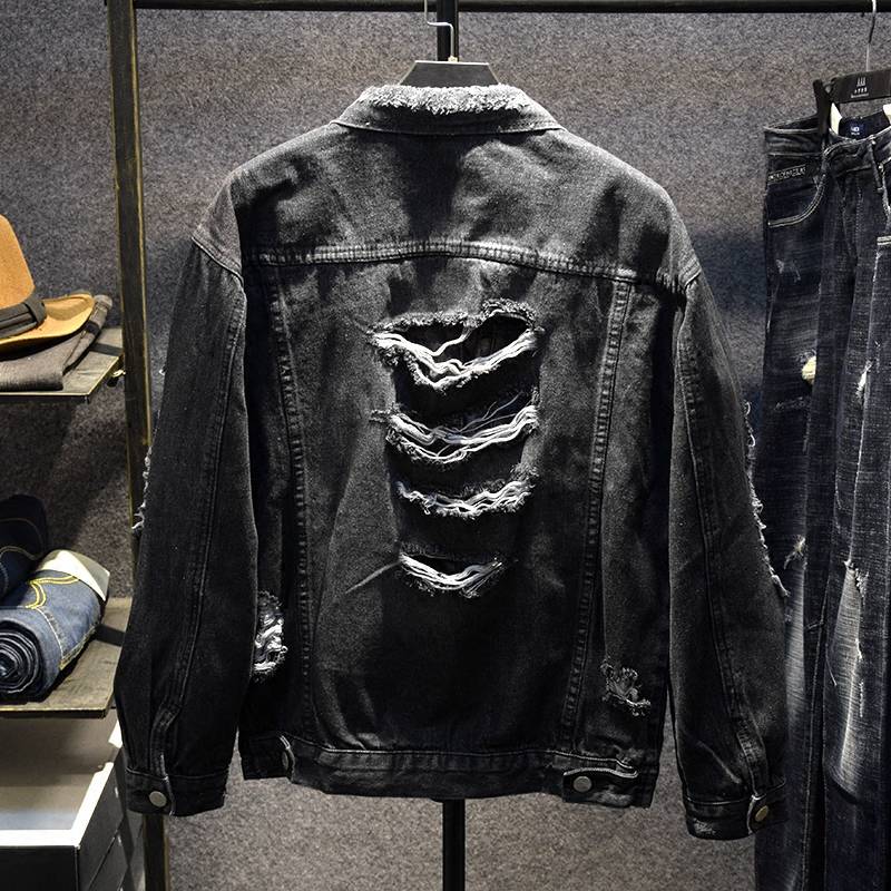 玩酷入春 春装BF风破洞修身潮牛仔外套男情侣夹克男上衣
