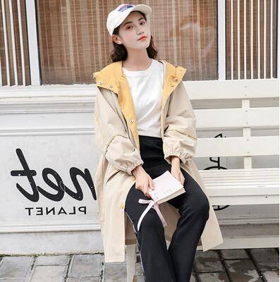 2018春秋新款韩版连帽宽松bf原宿中长款乌77夹克外套风衣包邮