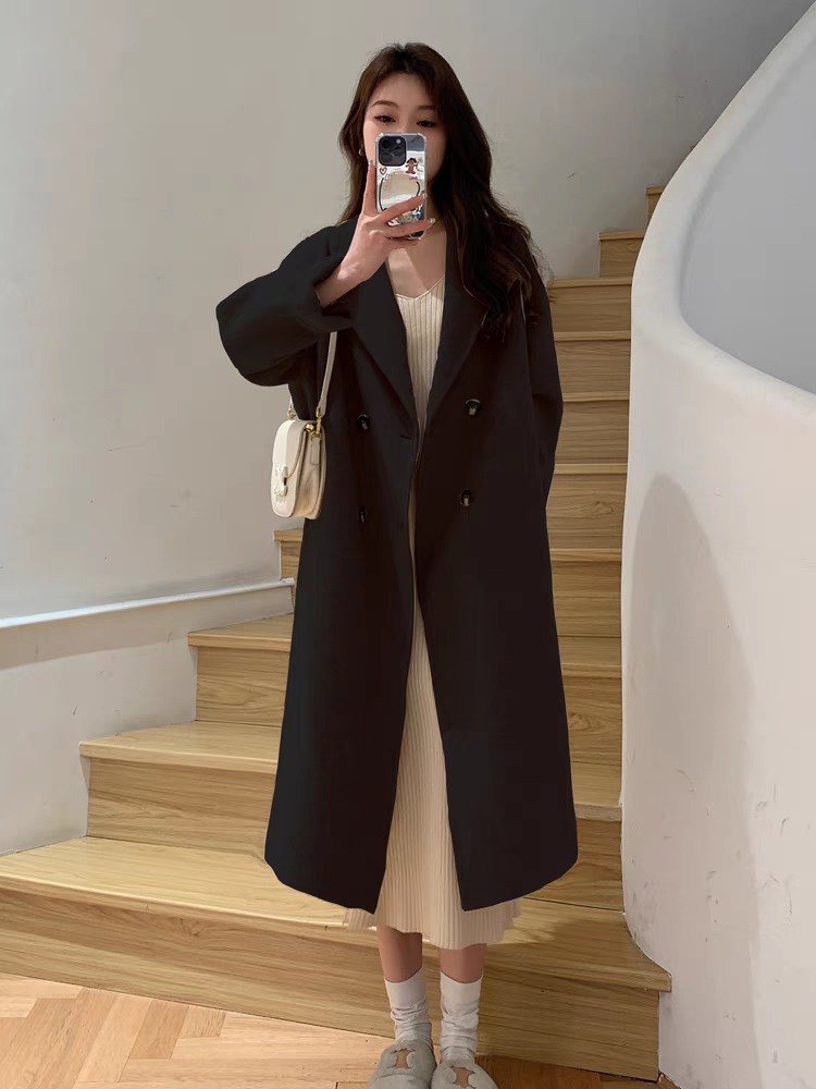 双面羊绒大衣女中长款2024春秋新款韩版宽松过膝燕麦色毛呢外套女