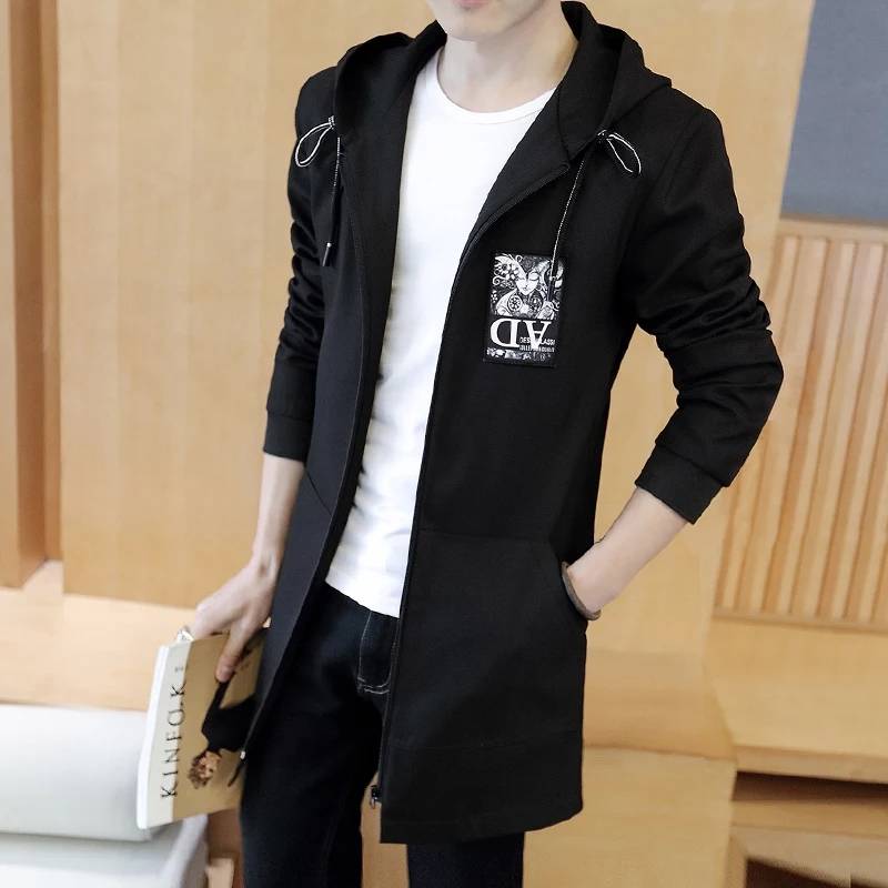 青少年夹克男韩版2018春秋装新款学生中长款连帽风衣男士外套潮
