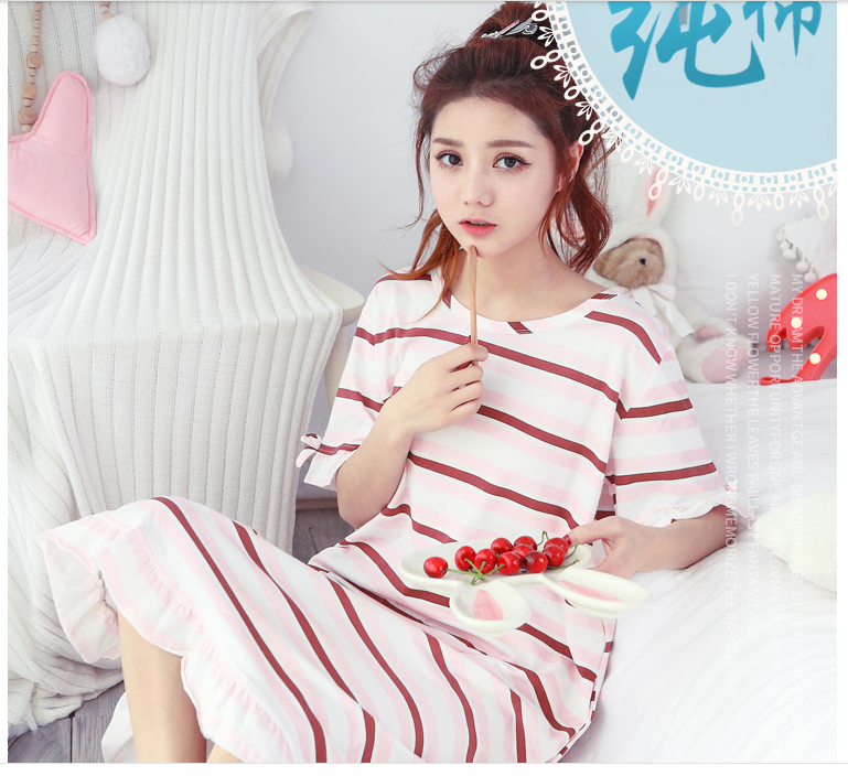 2018年夏季纯棉睡裙女夏季韩版清新学生睡衣