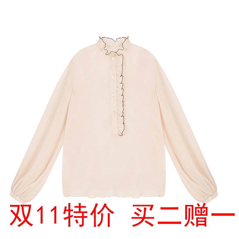 2019秋季新款 纯白雪纺衬衫 打底衫 名媛风少女网红
