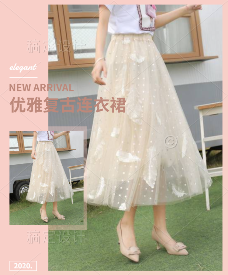 很仙的羽毛刺绣网纱半身裙 2020春季新款高腰显瘦中长款仙女裙