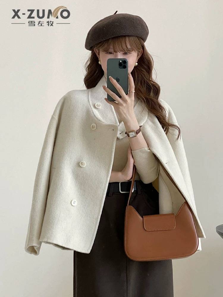 【盛宏】M家经典大衣双面羊绒大衣毛呢外套女水波纹羊绒大衣7202