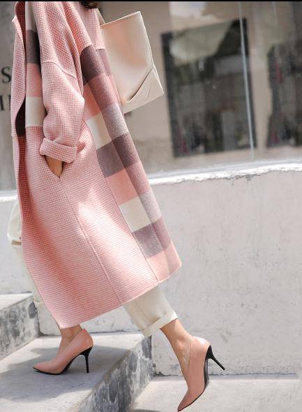 2018新款秋韩版格子双面羊绒大衣赫本风毛呢大衣女中长款羊毛外套