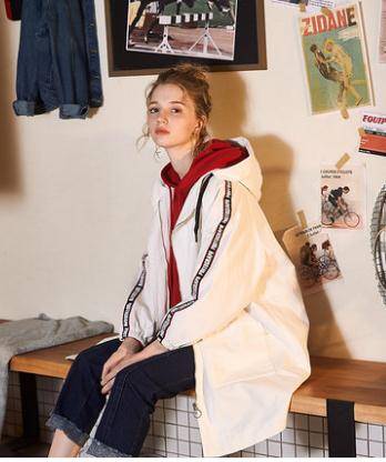 2018秋季新款外套女学生少女织带连帽中长款宽松风衣韩版潮Z