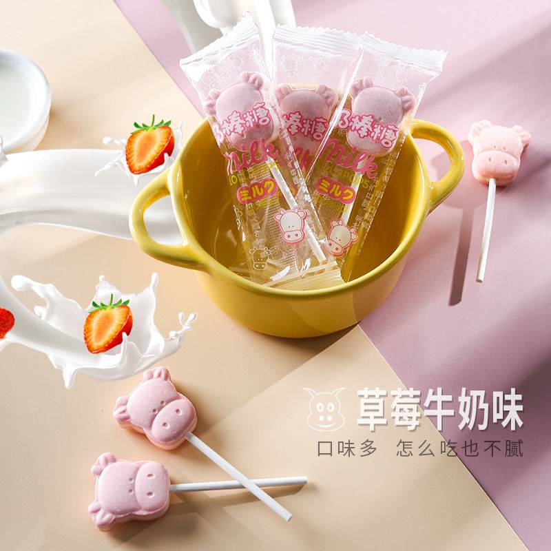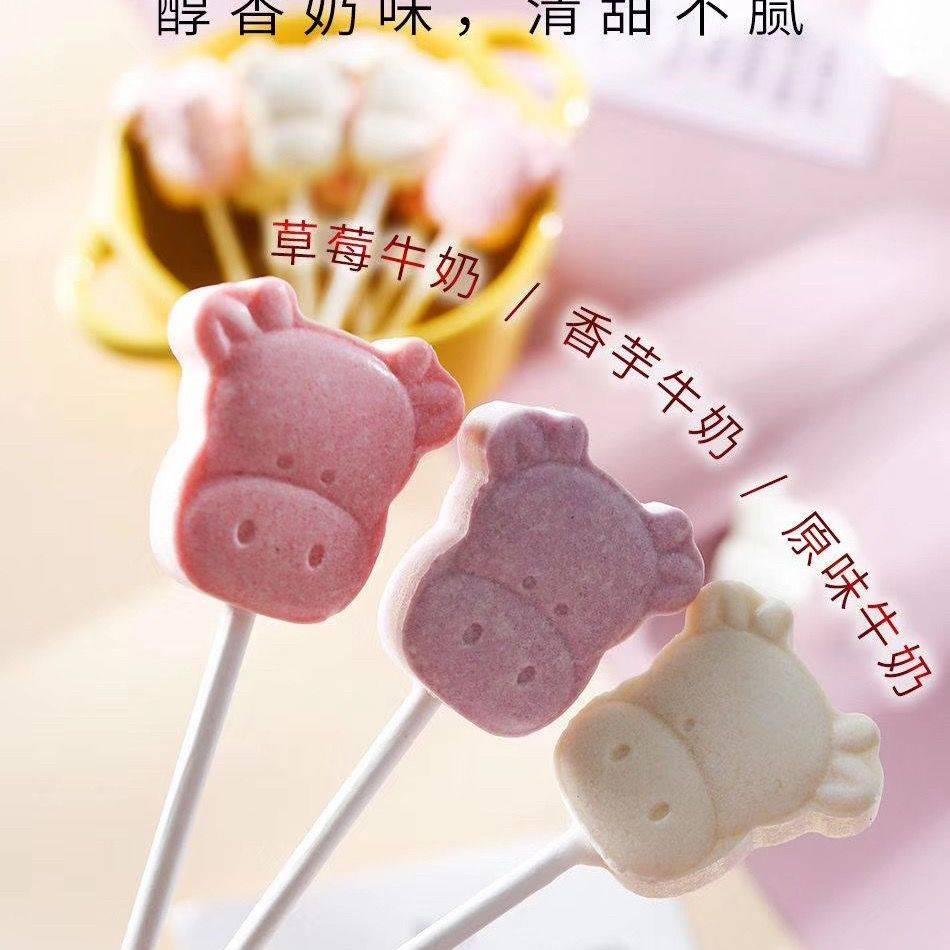 牛头棒棒无蔗糖奶片棒棒糖儿童零食可爱小牛头散装批发糖果