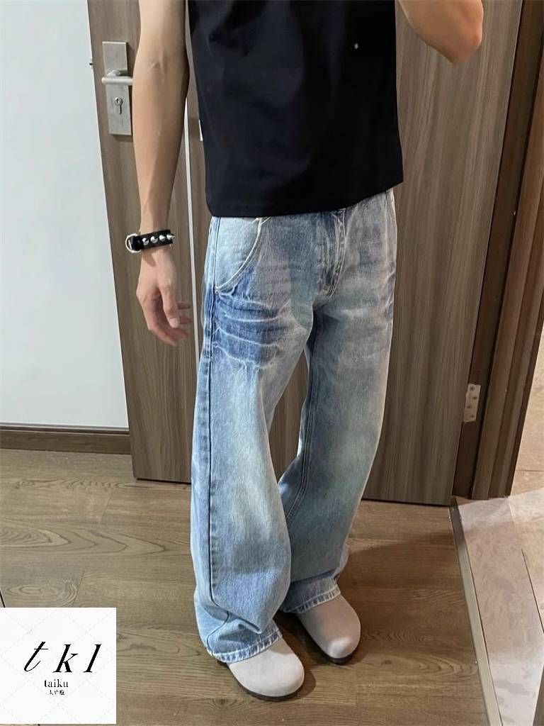 复古蓝色美式新款闪电牛仔裤子高街时尚显瘦宽松直筒设计男女裤子