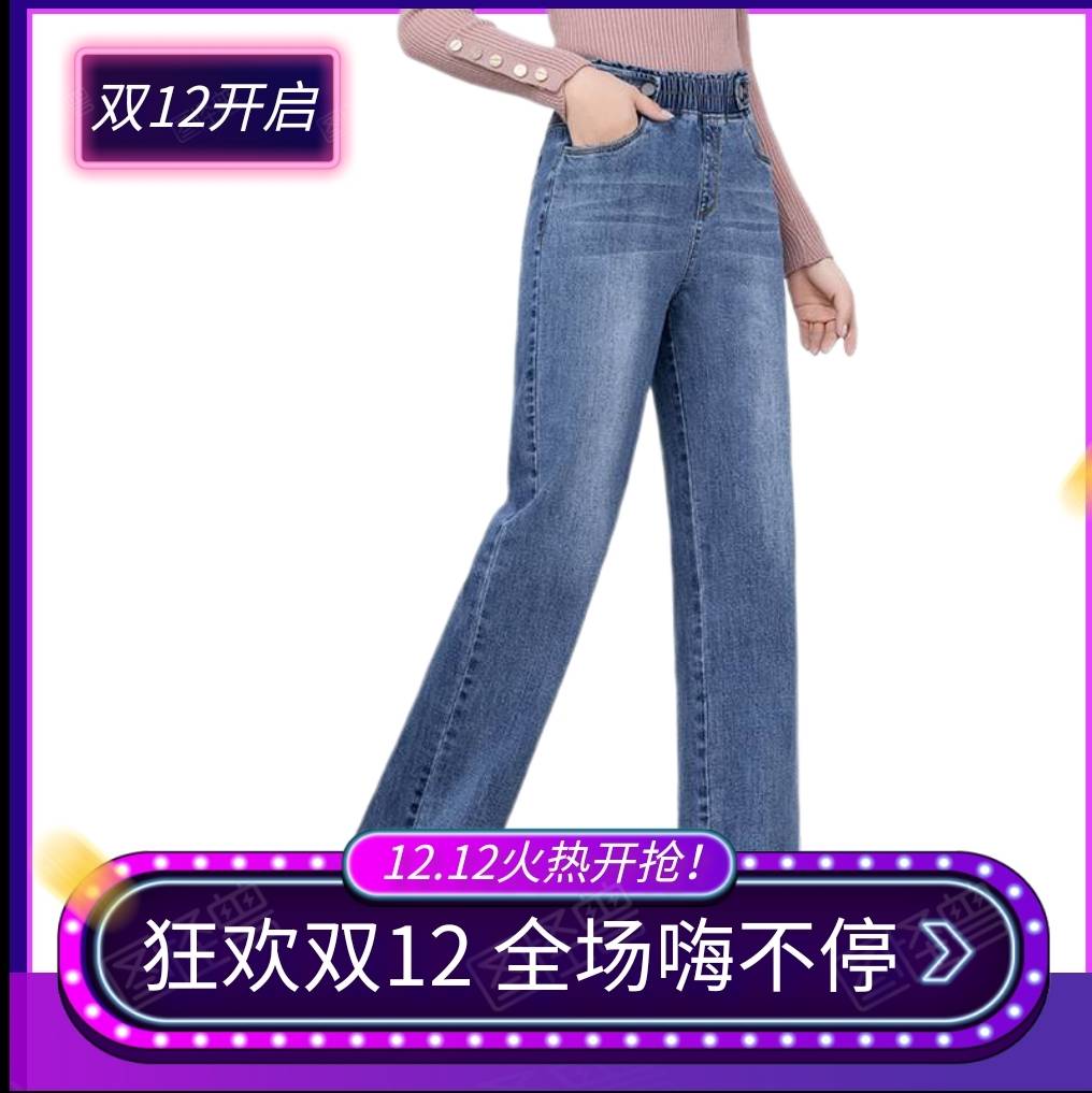 2020春夏新款批发松紧腰高腰牛仔裤女宽松直筒显瘦阔腿长裤