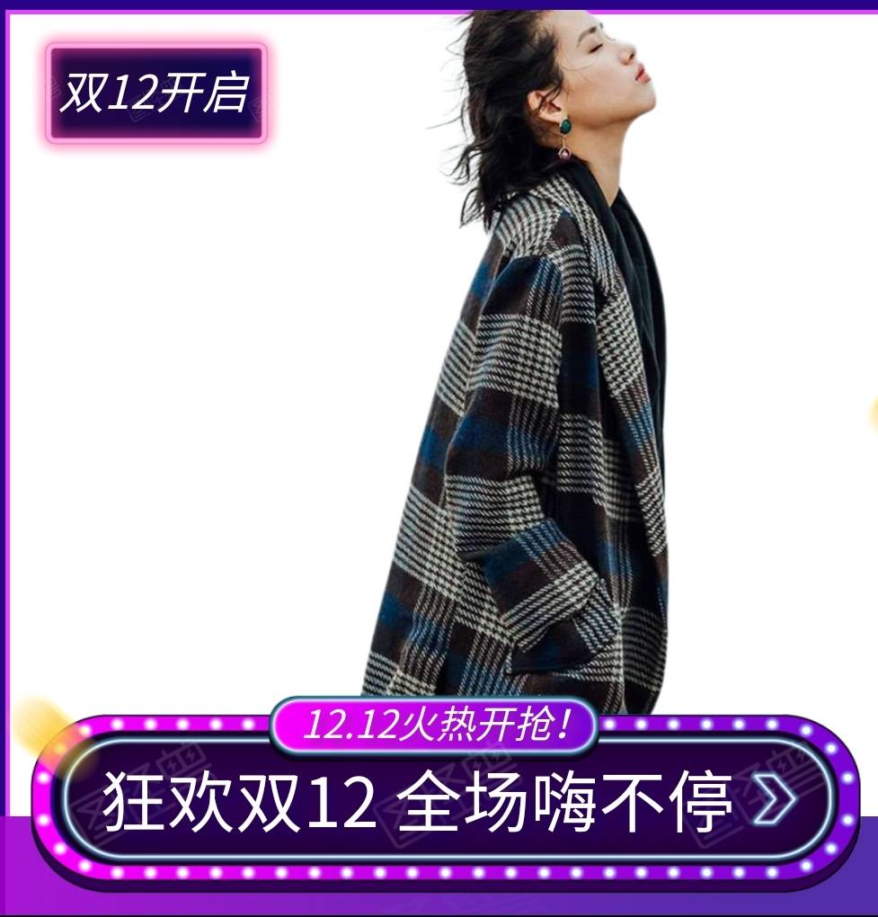 7099冬季新款女装设计师品牌复古兰格子长款毛呢外套大码羊毛大衣