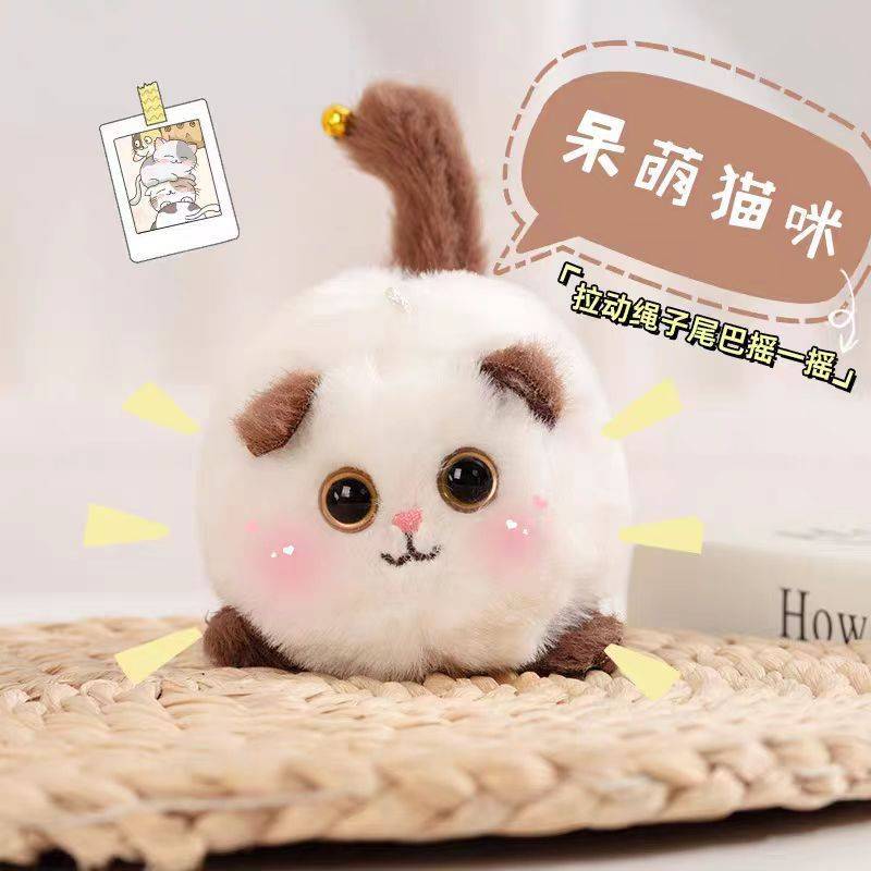 摇尾巴玩具小猫咪毛绒公仔拉绳会动会叫可爱毛绒卡通玩偶拉线转圈