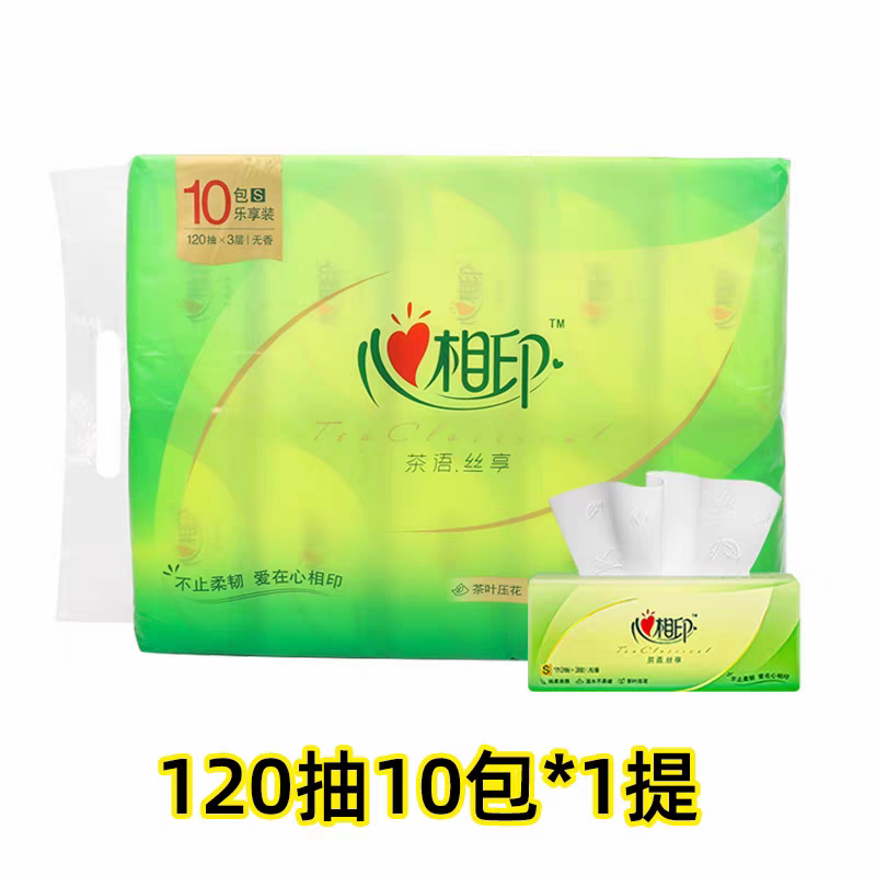 心相印茶语丝享S码120抽抽纸十连包原生木浆干湿两用餐巾纸面巾纸