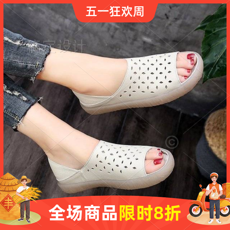 鞋夏季平底妈妈舒适拖鞋外穿大码女鞋