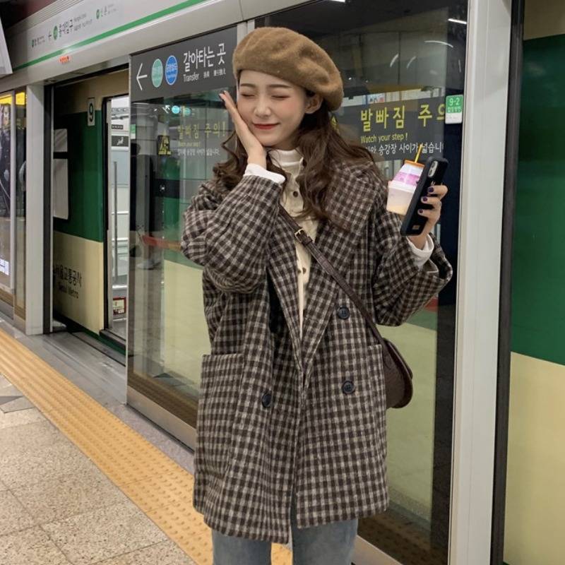 2020秋冬新款女保暖羊毛大衣色羊毛简约文艺毛呢大衣双面呢宽松潮