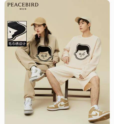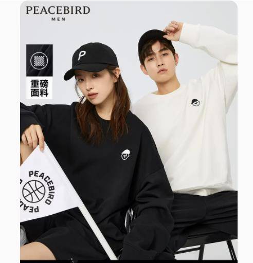 太平鸟男装 世界和平2022秋季款宽松时尚卫衣刺绣圆领情侣衣服潮