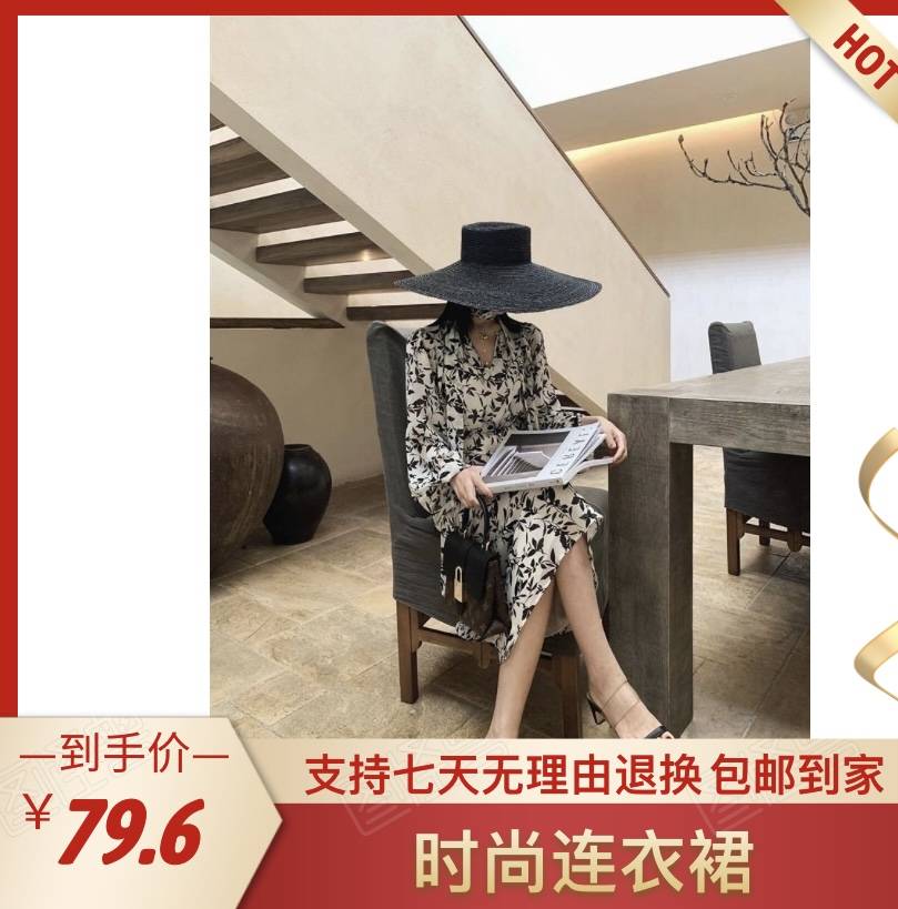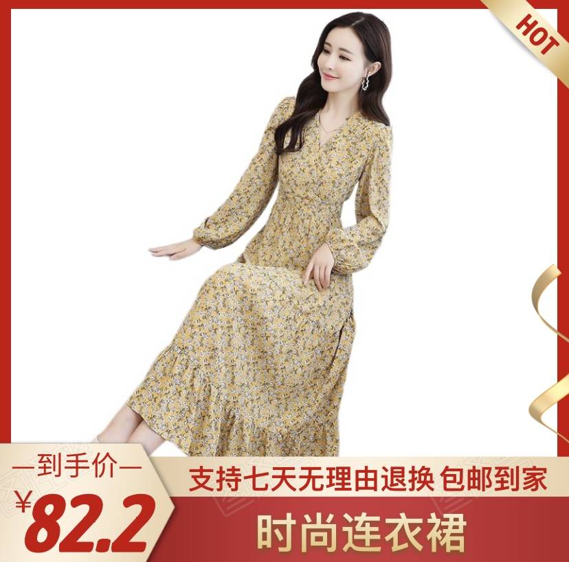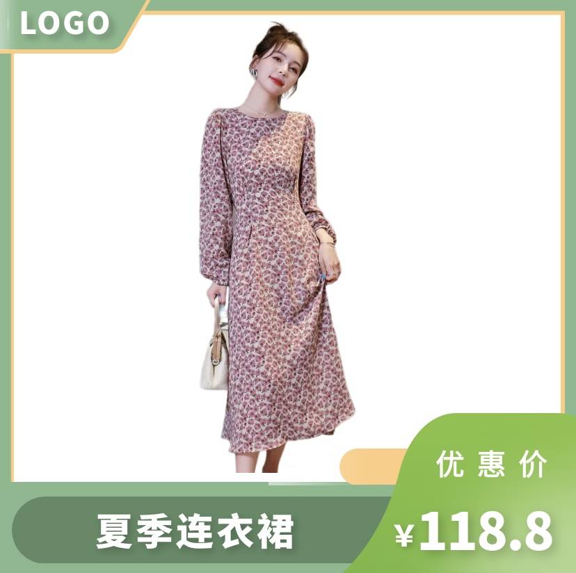 2024 秋季新款 法式复古雪纺碎花收腰长款连衣裙