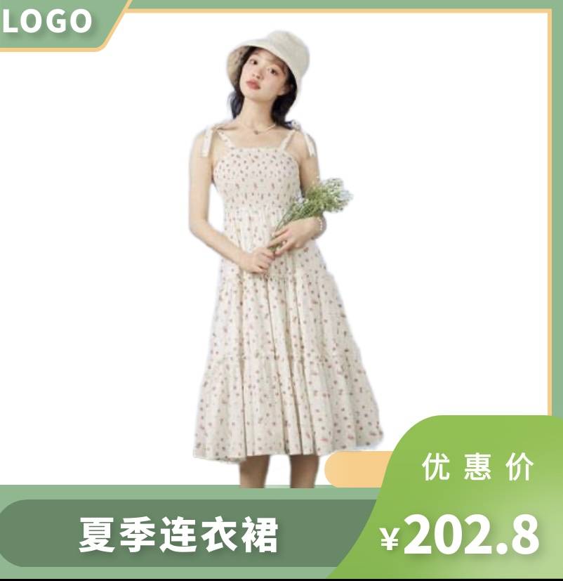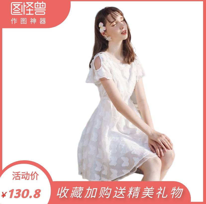 2024夏季 荷叶袖 圆领露肩 a字收腰雪纺连衣裙