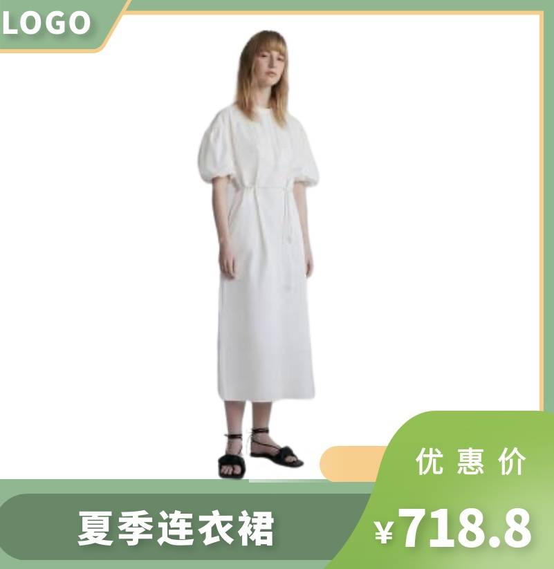 2024 FEMME 小众设计 夏季新款 宽松泡泡袖 不对称压褶长款连衣裙 配腰带
