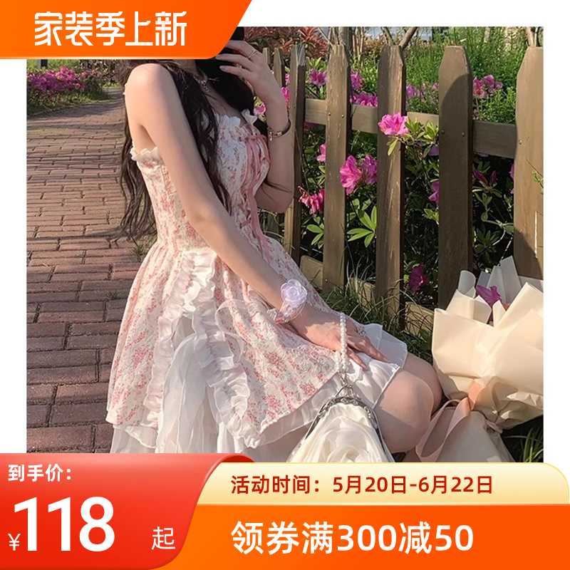 俏皮可爱甜美碎花裙抽绳纯欲吊带连衣裙