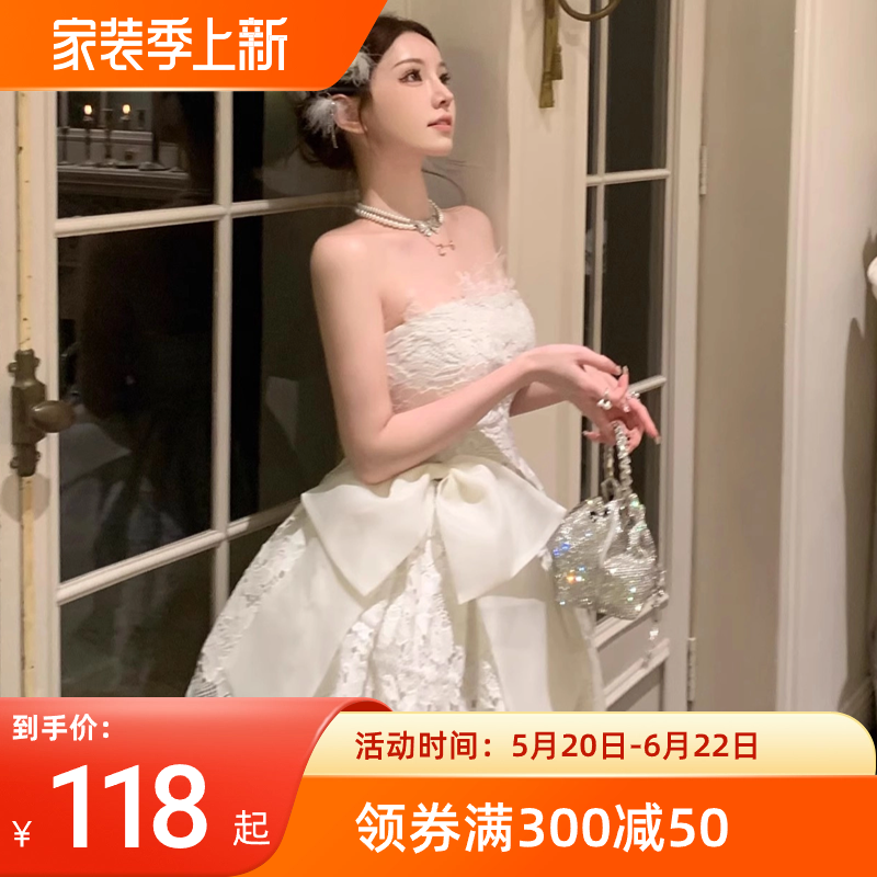 【1 0】】典芭蕾 抹胸收腰礼服短裙早春纯欲白色蕾丝连衣裙