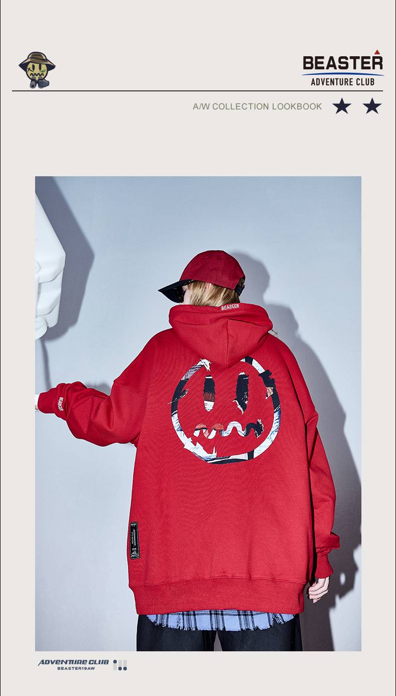 BEASTER小恶魔鬼脸国潮街头油画卫衣宽松情侣装男女嘻哈连帽卫衣