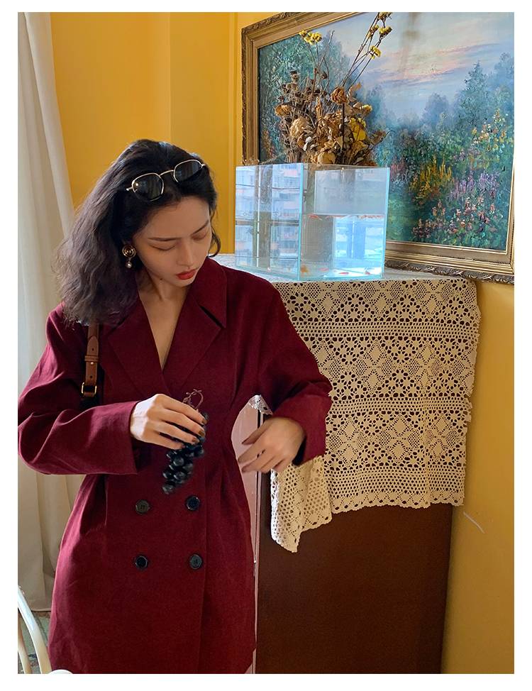 酒午港风复古2020秋季新款双排扣高腰西装裙酒红色显瘦长袖连衣裙