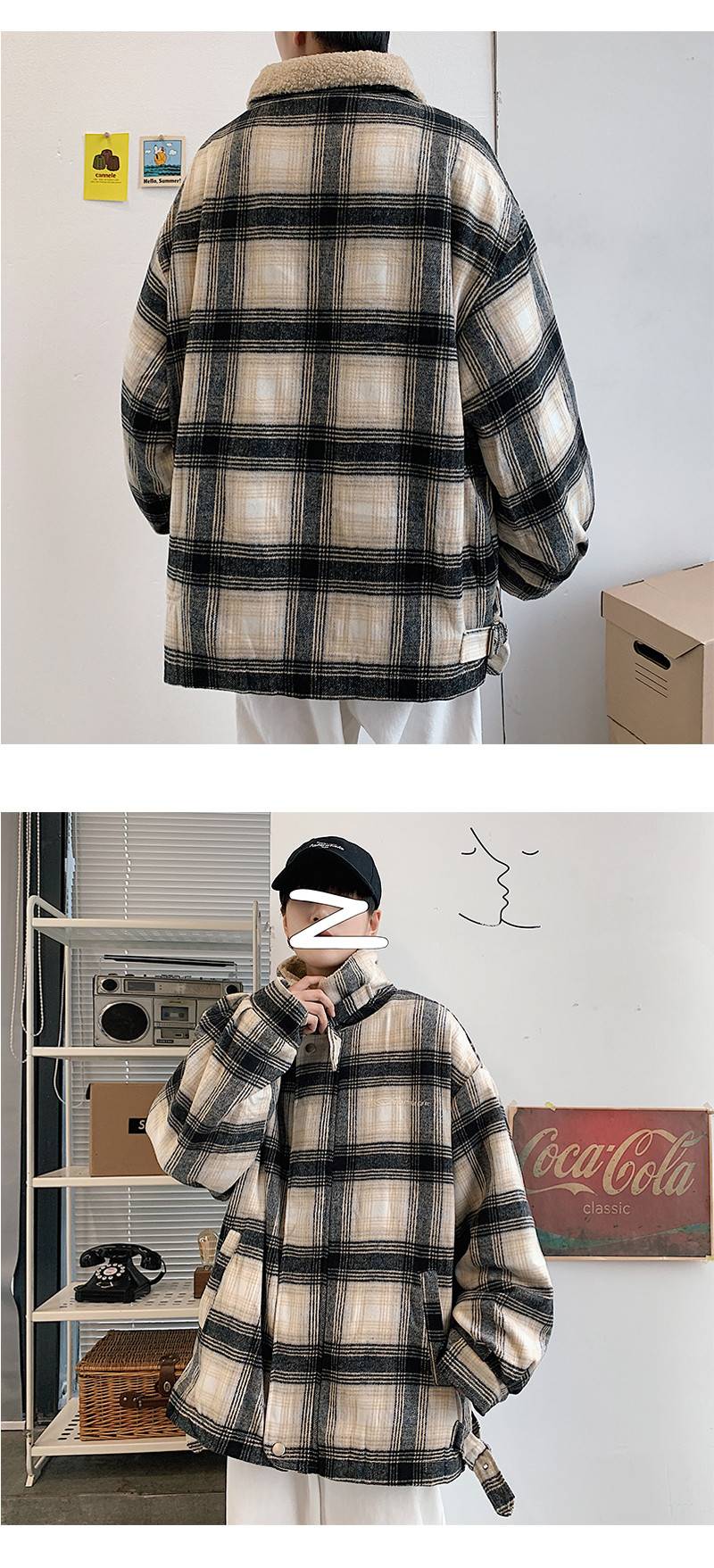 羊羔绒格子外套男2020新款冬季棉服加绒加厚棉衣潮牌ins港风冬装