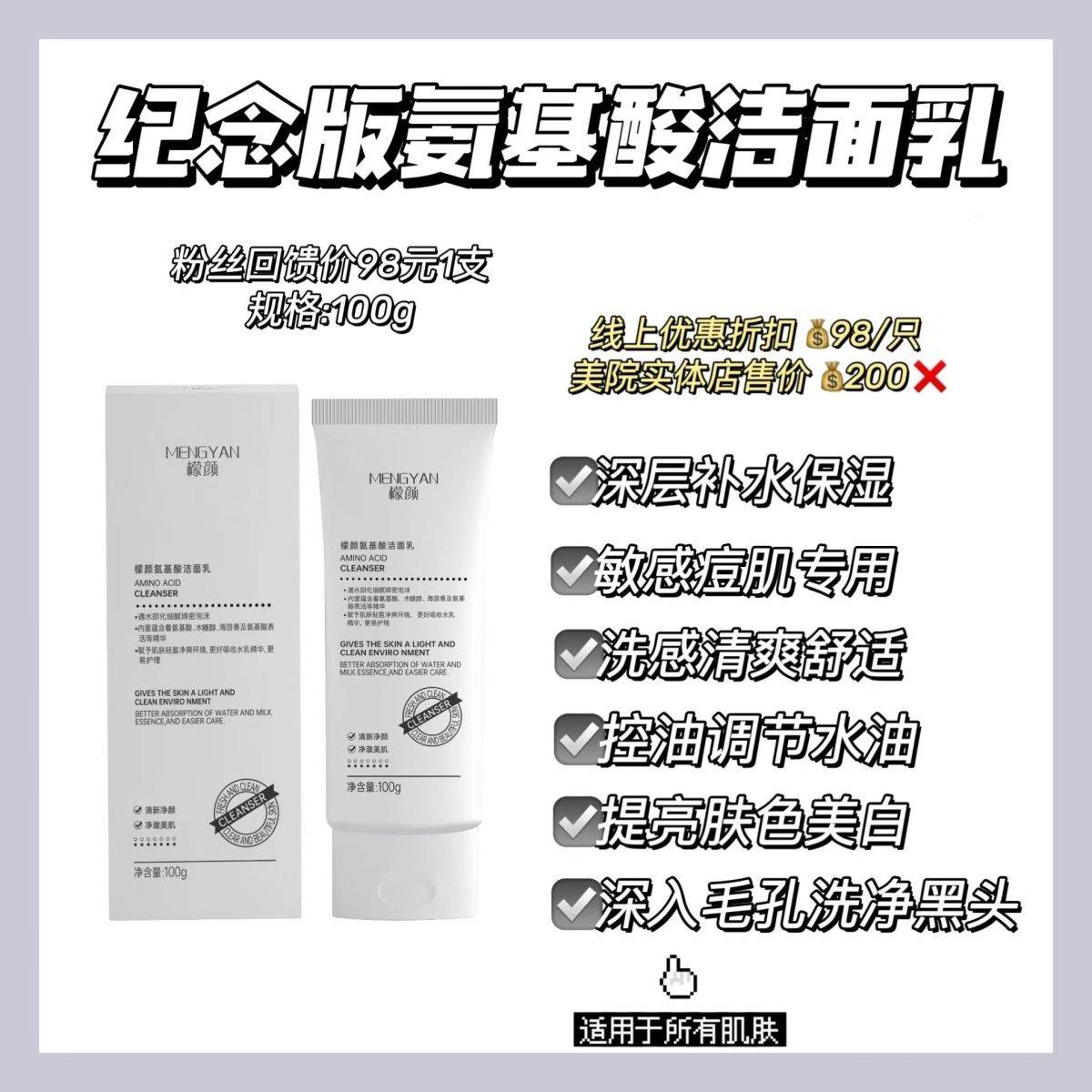 MENGYAN檬颜纪念版氨基酸洁面乳