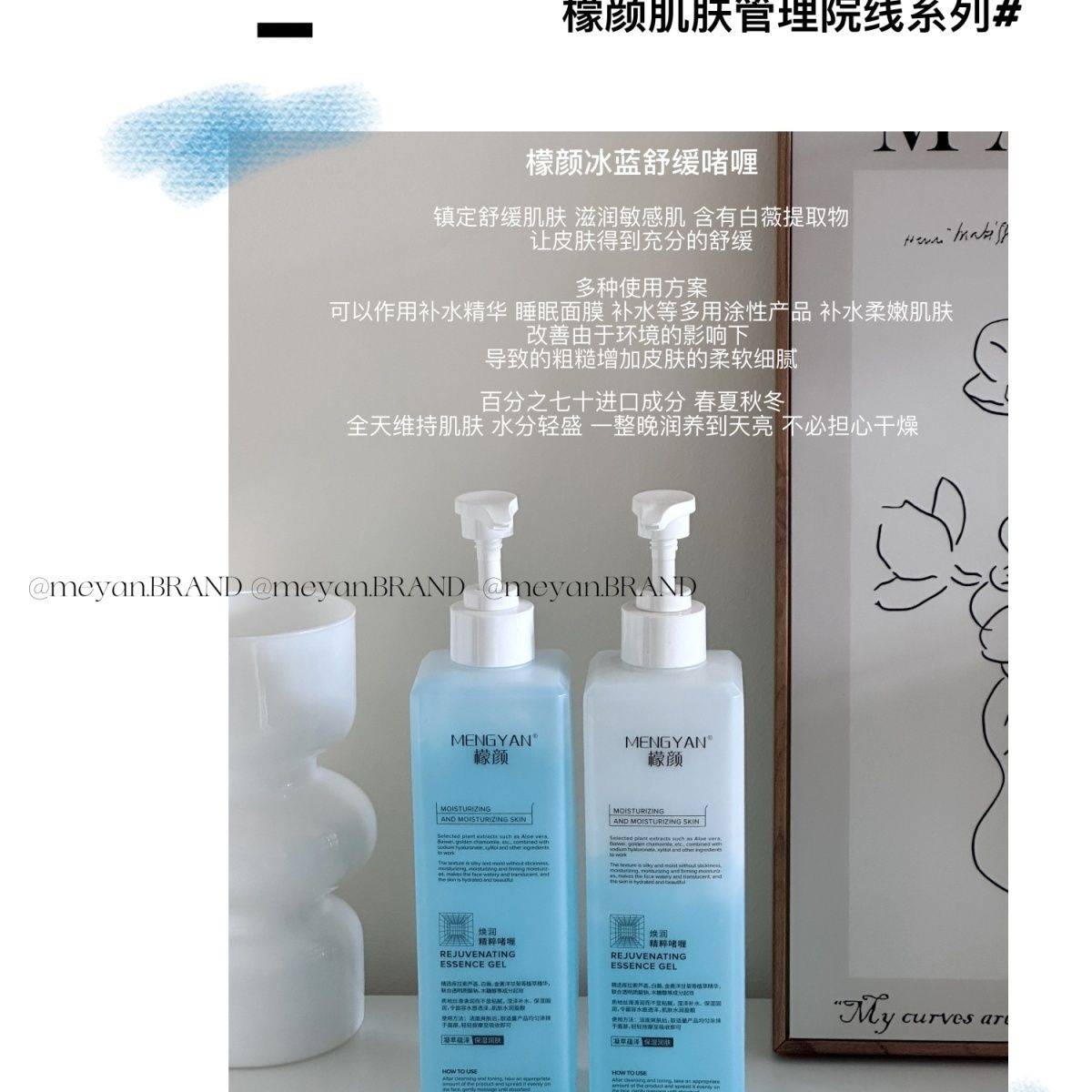 MENGYAN檬颜焕润精粹冰蓝舒缓维稳涂抹啫喱面膜修复正品睡眠清洁