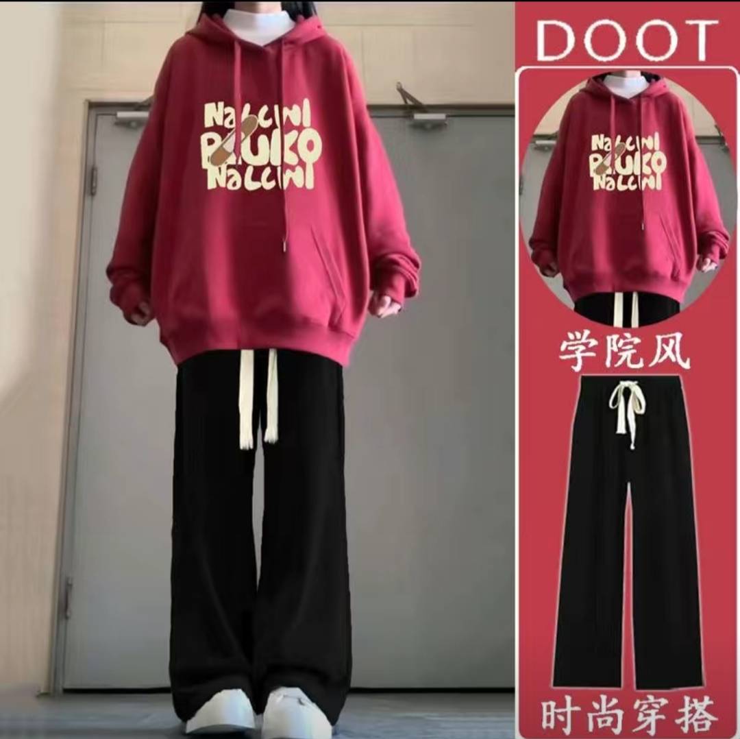 单/套装时尚卫衣女秋冬学生新款ins潮流上衣宽松抽绳裤子两件套