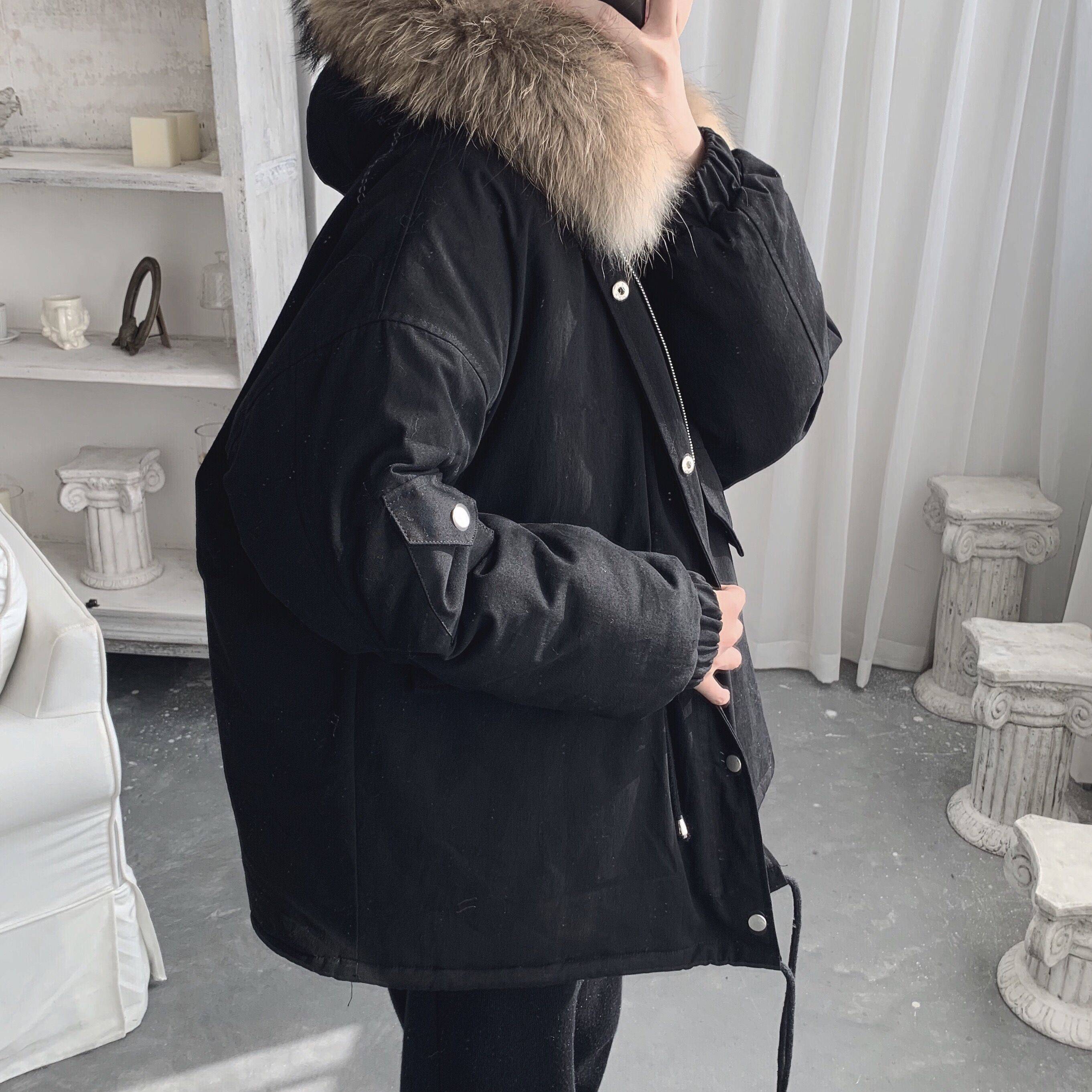 经典百搭两色时髦韩版宽松抽绳冬季新款大毛领棉服男
