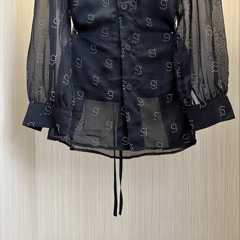 专柜商场撤回国际大牌剪标余单尾单早秋V领印花防晒长袖衬衫上衣