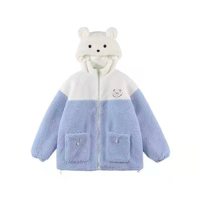 秋冬新款温柔可爱系穿搭小熊羊羔绒加绒加厚外套直筒灯芯绒阔腿裤
