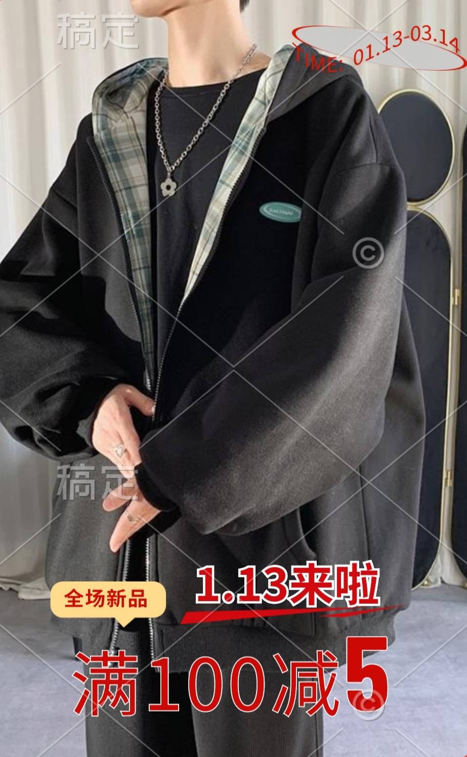 两面穿男士开衫卫衣2022新款春秋季连帽潮ins宽松休闲套装学生