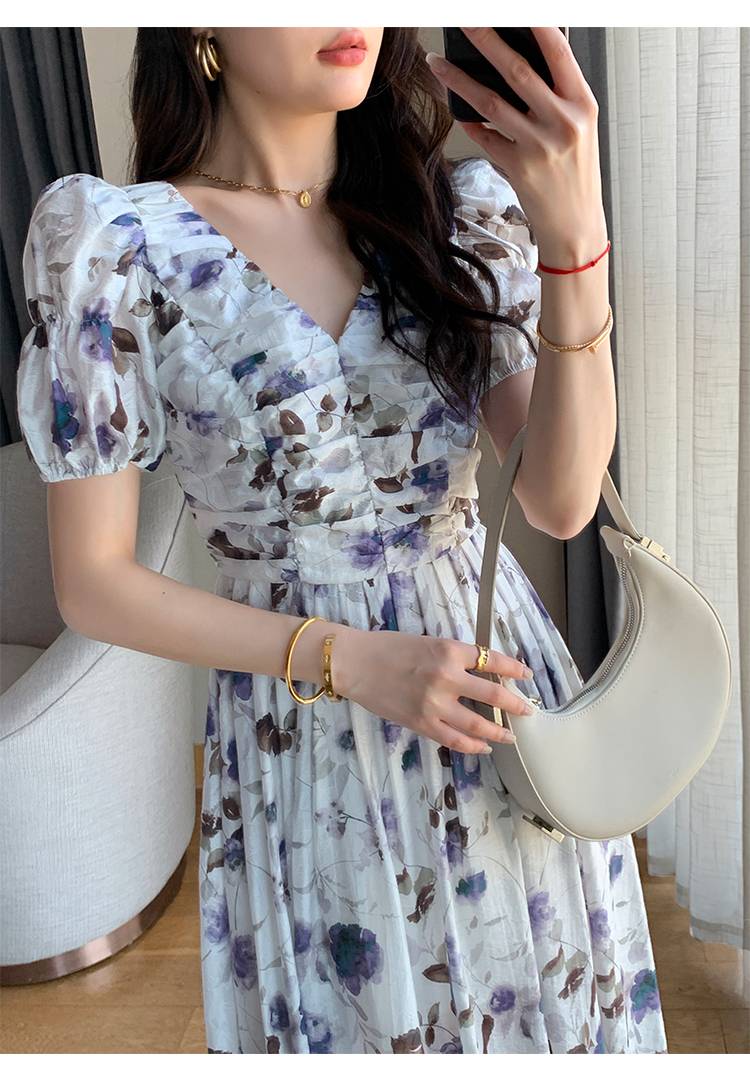 碎花连衣裙女2023夏季新款V领法式茶歇度假温柔风气质长裙
