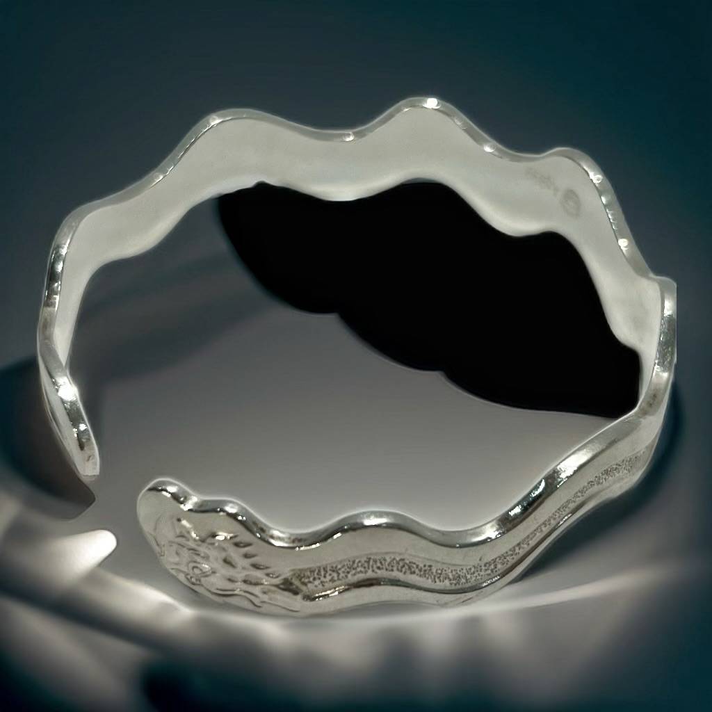 S925纯银不规则波浪形手环手镯女小众设计简约轻奢网红手链