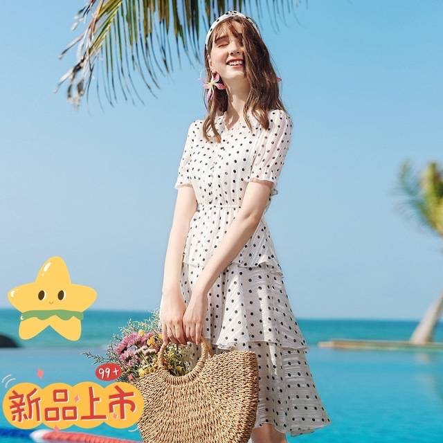 2020夏季新款品牌女装v领波点荷叶边裙气质轻熟雪纺连衣裙