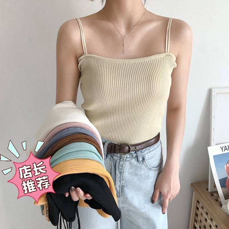 春夏chic打底针织吊带背心女外穿韩版小清新学生修身纯色内搭上衣