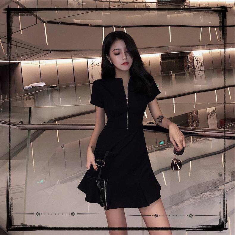 心机裙子设计感超仙女冷淡风赫本小黑裙极简主义鱼尾连衣裙2019夏