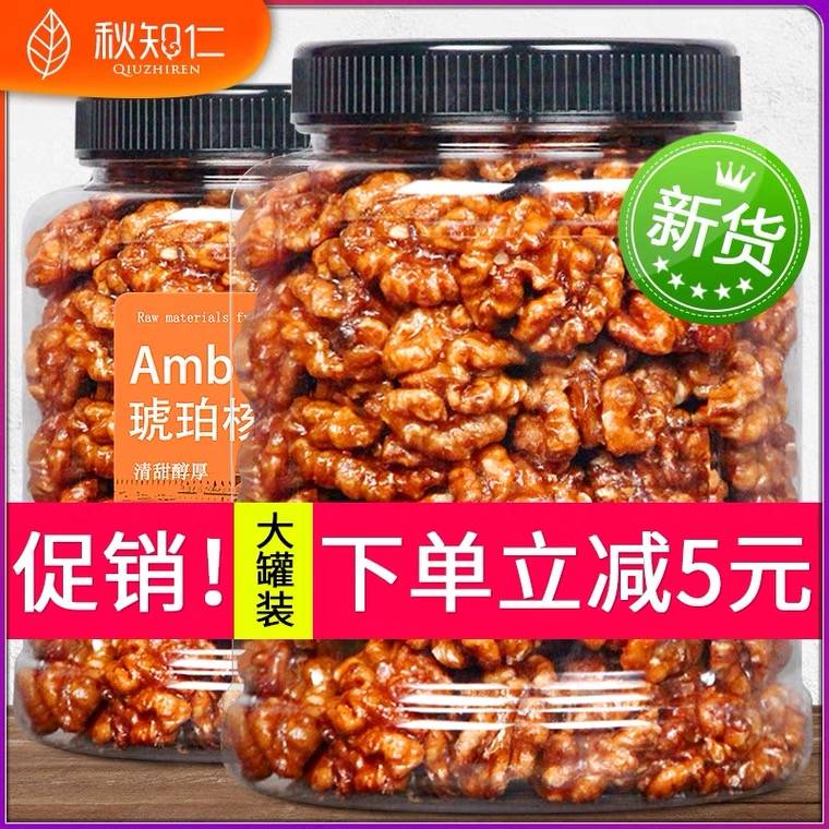 琥珀核桃仁500g净重罐装焦糖蜂蜜味坚果零食散装新鲜熟小山核桃肉