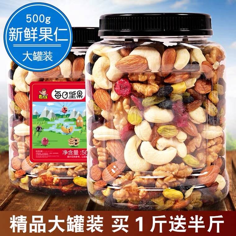 年货每日坚果干果混合坚果仁500g罐装散装新货儿童孕妇健康零食