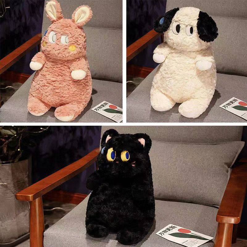 可爱呆萌流汗大眼仔狗公仔大眼猫咪兔子玩偶毛绒玩具女友生日礼物