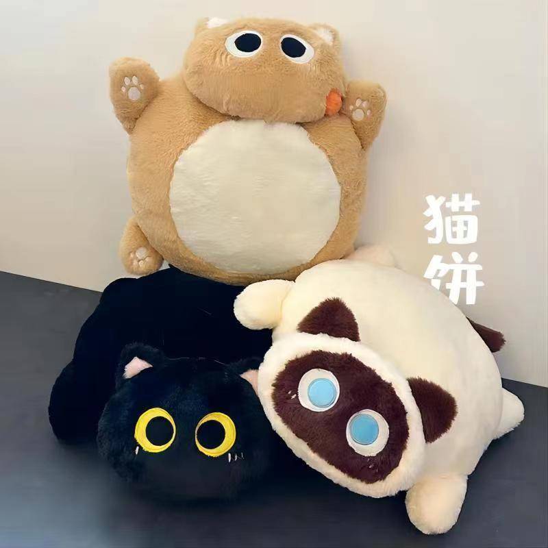 创意毛绒猫饼抱枕靠垫坐垫猫猫毛绒玩具玩偶车载坐垫生日礼物女生