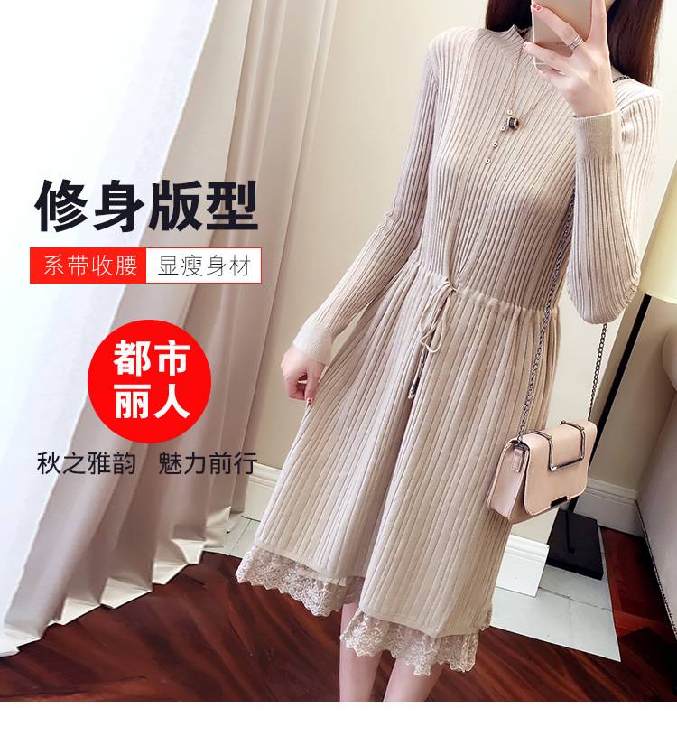 2019春夏新款女装法式中长款拼接连衣裙