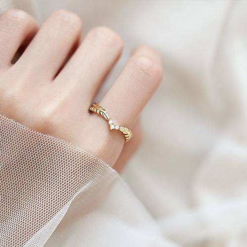 2021年新款金色双钻叶子圈简约优雅女戒指