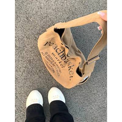 斜挎帆布包女2022新款潮美式复古单肩包大容量学生上课装书托特包
