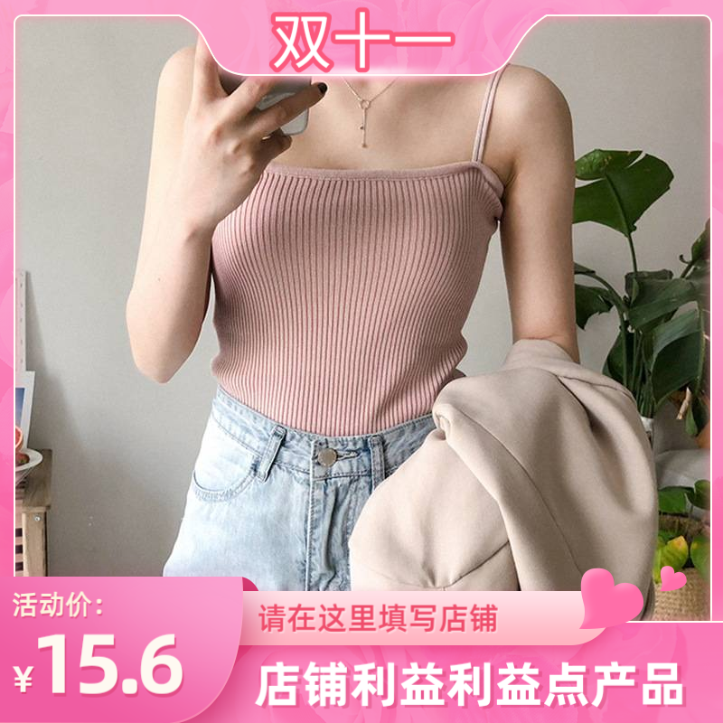 春夏chic打底针织吊带背心女外穿韩版小清新学生修身纯色内搭上衣