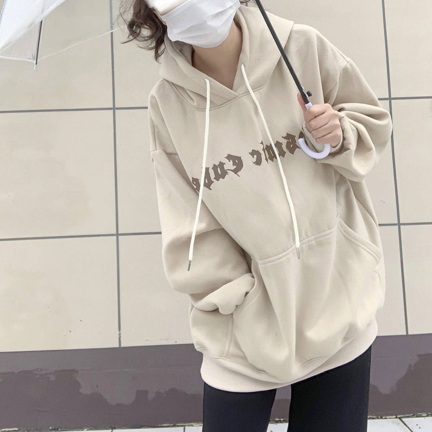 100%纯棉毛圈卫衣女学生宽松ins潮牌秋季贴布连帽长袖上衣卫衣
