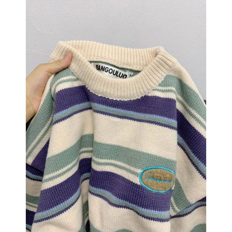 ¥90.00 秋冬季爆款时尚潮流,双色条纹宽松针织衣