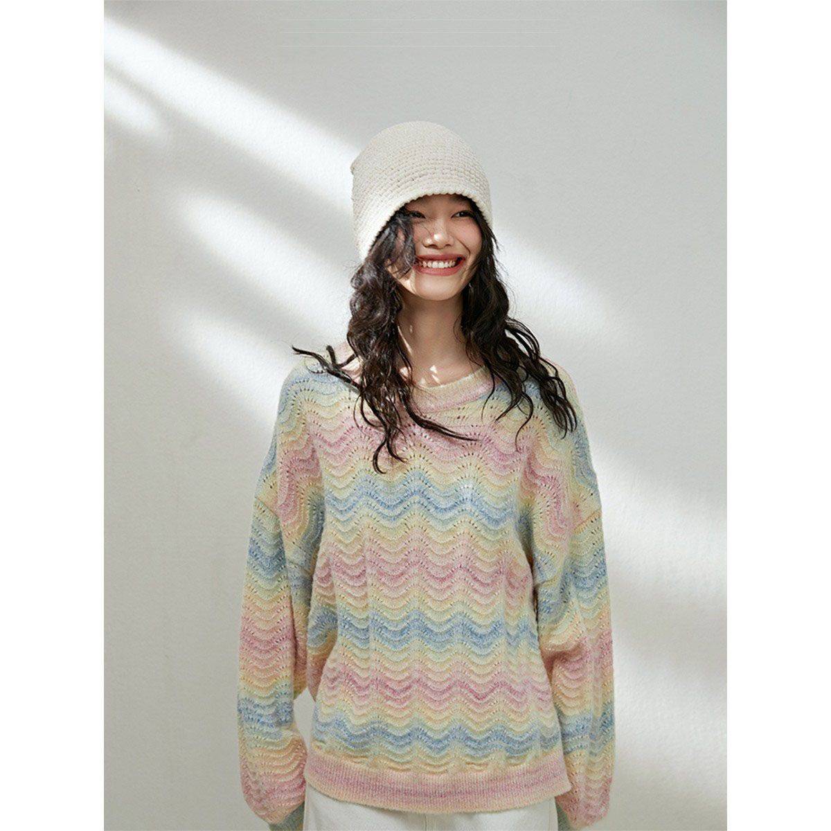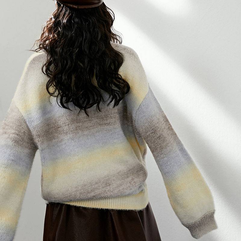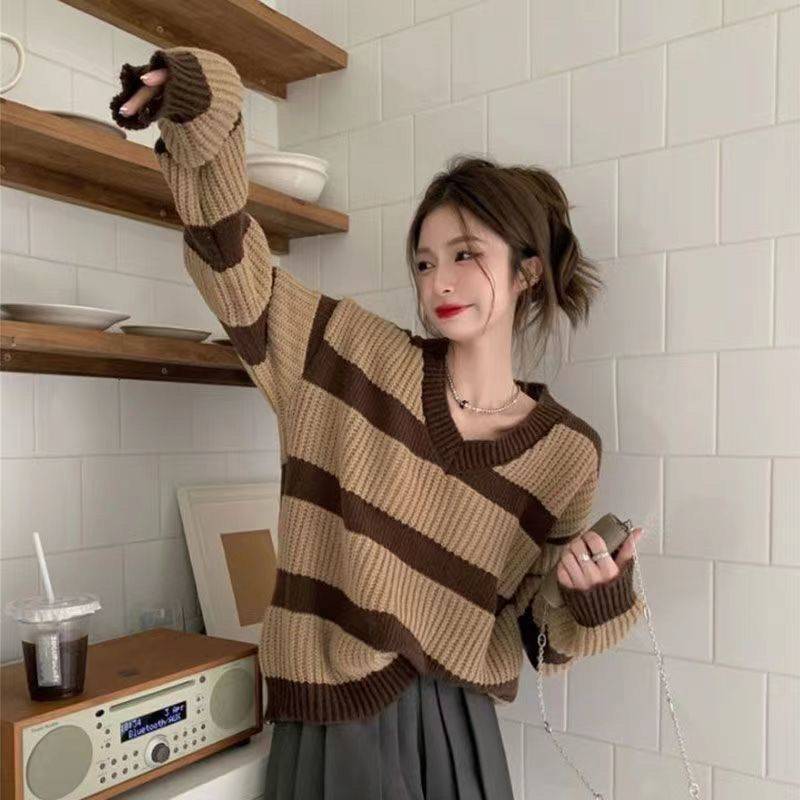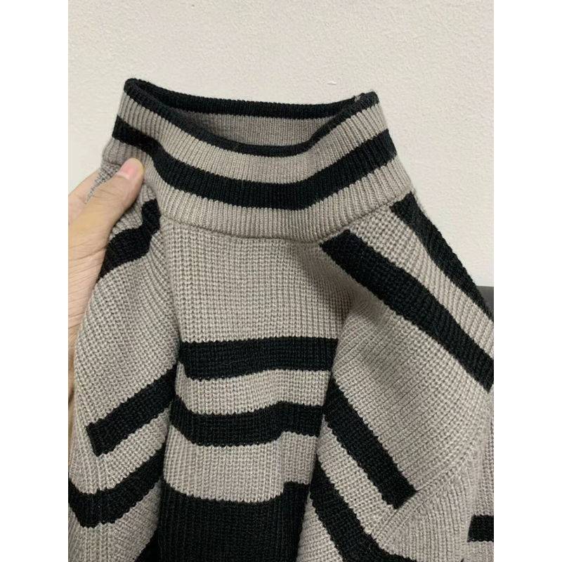 秋冬季爆款时尚潮流,双色条纹宽松针织衣